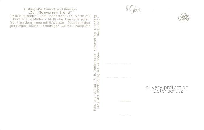 73829650 Hohenstadt Mittelfranken Ausflugs Restaurant Zum Schwarzen Brand postalisch nicht gelaufen Erhaltung siehe scans [FriedD77] KatCode: 11110009574147