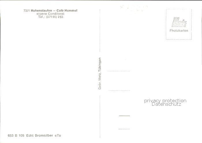 41760670 Hohenstaufen Cafe Conditorei Hommerl postalisch nicht gelaufen Erhaltung siehe scans KatCode: 11110008117026