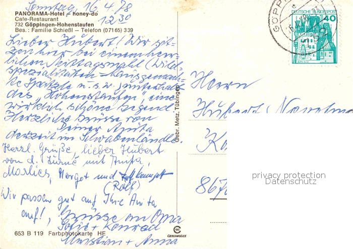 72849111 alte Postkarte Hohenstaufen Panorama Hotel Honey Do postalisch gelaufen Erhaltung siehe scans [AndreD76] KatCode: 11110008117026