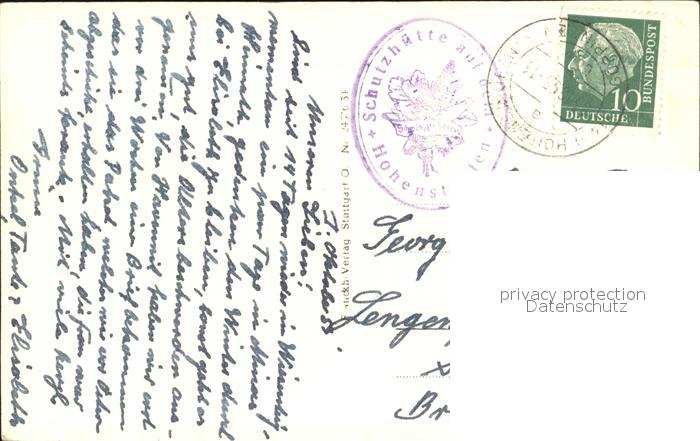 72405218 alte Postkarte Hohenstaufen Vers postalisch gelaufen Erhaltung siehe scans KatCode: 11110008117026