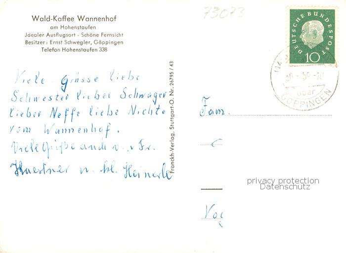 73855377 alte Postkarte Hohenstaufen Wald-Kaffee Wannenhof am Hohenstaufen Viehweide Panorama postalisch gelaufen Erhaltung siehe scans [FriedD77] KatCode: 11110008117026