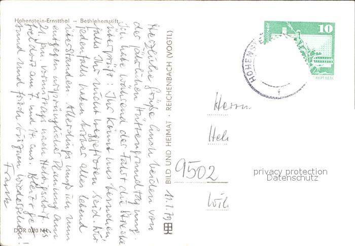 72339246 alte Postkarte Hohenstein-Ernstthal Bethlehemstift postalisch gelaufen Erhaltung siehe scans KatCode: 11110014173100
