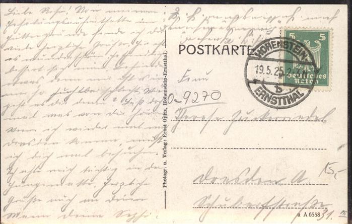 41474417 alte Postkarte Hohenstein-Ernstthal Bethlehemstift Gasthaus Heiterer Blick postalisch gelaufen Erhaltung siehe scans KatCode: 11110014173100