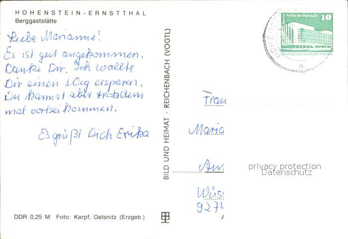 72137095 alte Postkarte Hohenstein-Ernstthal Hohenstein Berggaststaette postalisch gelaufen KatCode: 11110014173100
