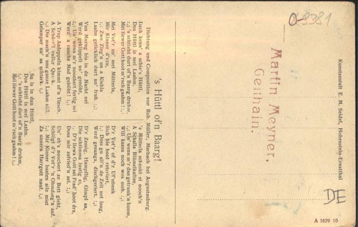 40976247 Hohenstein-Ernstthal Liedtext: S Hüttl of`n Baarg KatCode 11110014173100