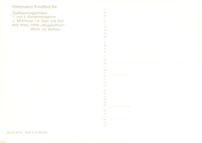 73891432 Hohenstein-Ernstthal Sachsenring Rennstrecke Queckenbergkurve MTS Kurve Start und Ziel HOG Berggasthaus Markt mit Rathaus postalisch nicht gelaufen Erhaltung siehe scans [WerneD78] KatCode: 11110014173100