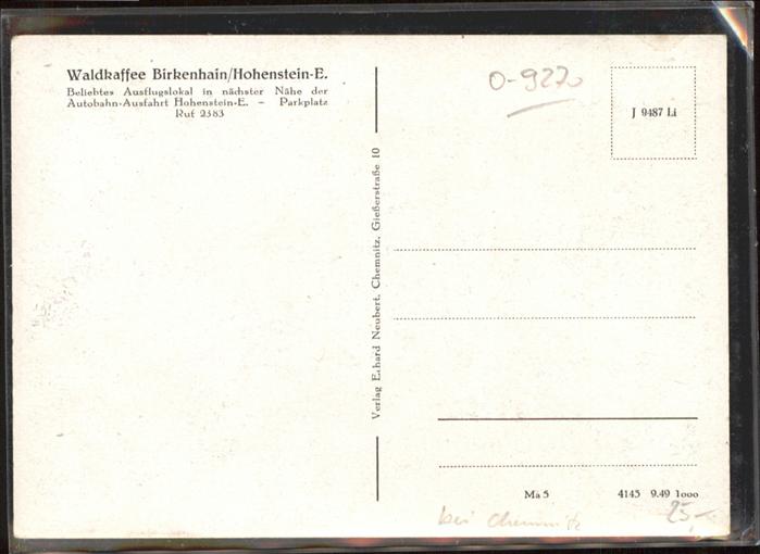 40904828 Hohenstein-Ernstthal Waldkaffee Birkenhain Bethlehemstift Autobahn Karl May Haus KatCode 11110014173100
