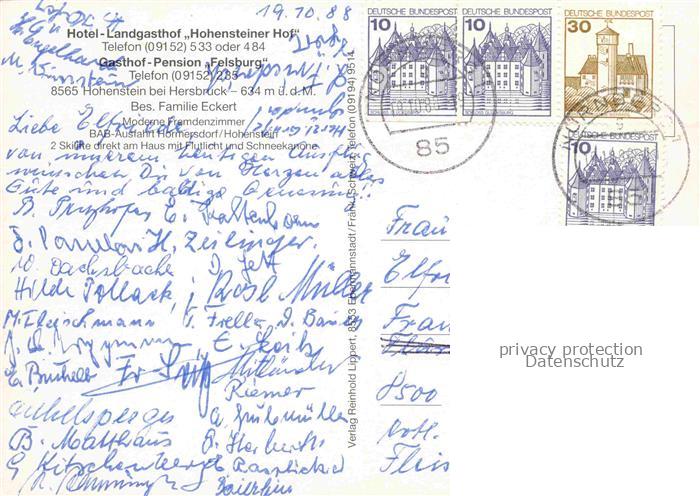 74034371 alte Postkarte Hohenstein Hersbruck Hotel Landgasthof Hohensteiner Hof Terrasse Blick zur Burg postalisch gelaufen Erhaltung siehe scans [FriedD77] KatCode: 11110009574132