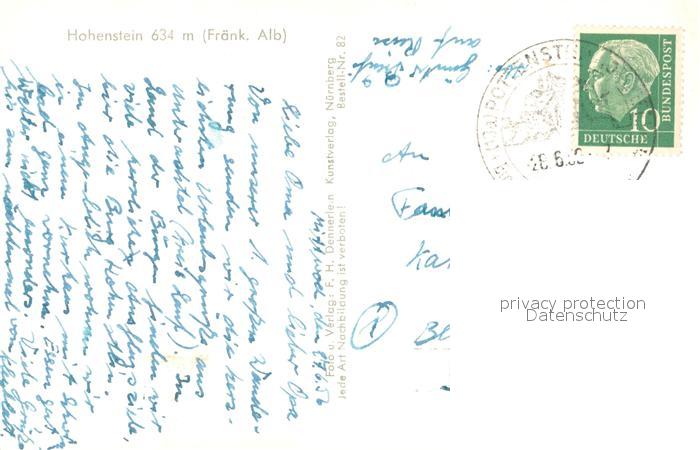 73647498 alte Postkarte Hohenstein Hersbruck Schloss Gasthof postalisch gelaufen Erhaltung siehe scans [WerneD78] KatCode: 11110009574132