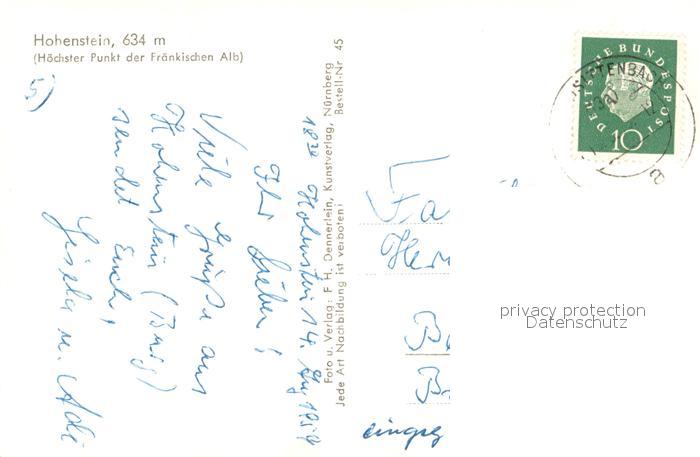 73673123 alte Postkarte Hohenstein Kirchensittenbach Ortsansicht mit Burg Hohenstein postalisch gelaufen Erhaltung siehe scans [FriedD77] KatCode: 11110009574135
