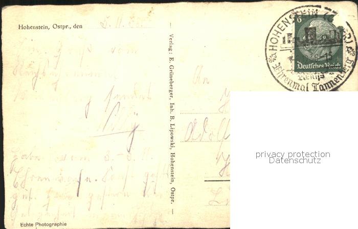old postcard Hohenstein Ostpreussen Reichsehrenmal Tannenberg postalisch gelaufen Erhaltung siehe scans