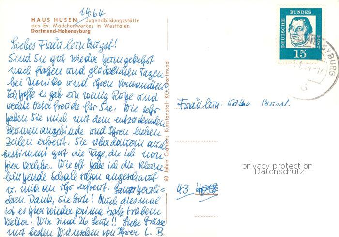 73544611 alte Postkarte Hohensyburg Haus Husen Jugendbildungsstaette postalisch gelaufen Erhaltung siehe scans [WerneD78] KatCode: 11110005913000