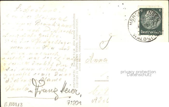 31708373 alte Postkarte Hohentengen Hochrhein Fliegeraufnahme postalisch gelaufen Erhaltung siehe scans KatCode: 11110008337053