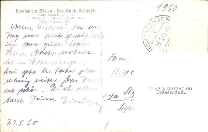 32180576 alte Postkarte Hohentengen Hochrhein Gasthaus zum Loewen Schloss Roetteln postalisch gelaufen Erhaltung siehe scans KatCode: 11110008337053