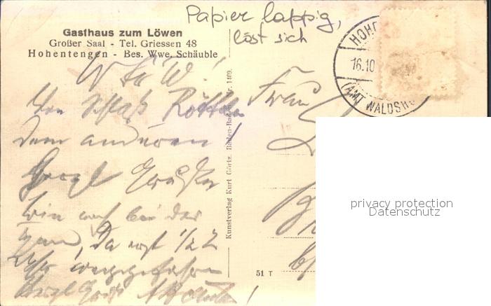 32187143 alte Postkarte Hohentengen Hochrhein Gasthaus zum Loewen Schloss Roetteln postalisch gelaufen Erhaltung siehe scans KatCode: 11110008337053