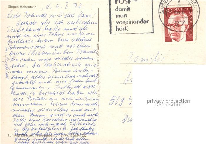 72940801 alte Postkarte Hohentwiel Fliegeraufnahme postalisch gelaufen Erhaltung siehe scans [KathaD81] KatCode: 11110008335075
