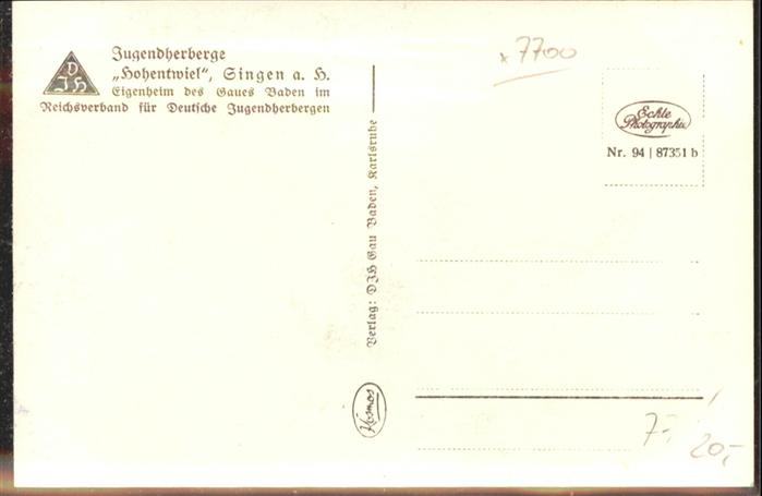 40954574 Hohentwiel Jugendherberge NZ4 postalisch nicht gelaufen Alte Ansichtskarte Postkarte Katcode 11110008335075
