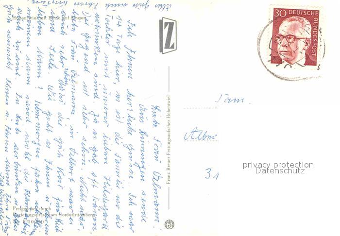 72628443 alte Postkarte Hohentwiel Singen postalisch gelaufen Erhaltung siehe scans [NatalD47] KatCode: 11110008335075