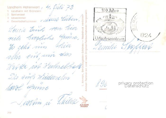 73198239 alte Postkarte Hohenwart Paar Landheim Gruenstein Speisesaal Lesezimmer Gesellschaftszimmer postalisch gelaufen Erhaltung siehe scans [KathaD81] KatCode: 11110009186128