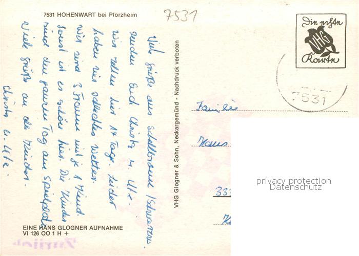 73867492 alte Postkarte Hohenwart Pforzheim Ortspartien Kirche postalisch gelaufen Erhaltung siehe scans [WerneD78] KatCode: 11110008231000
