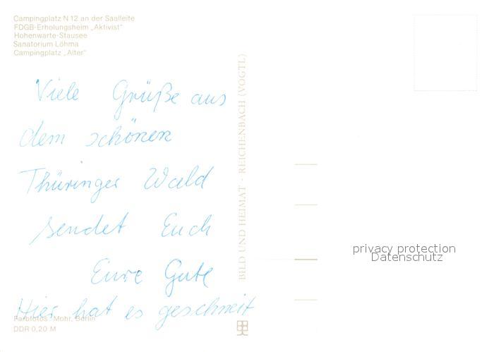 73013686 Hohenwarte Campingplatz FDGB Erholungsheim Aktivist Sanatorium Loehma Campingplatz Alter postalisch nicht gelaufen Erhaltung siehe scans [WerneD78] KatCode: 11110016073035