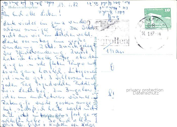 72446384 alte Postkarte Hohenwarte Hohenwartesperre postalisch gelaufen Erhaltung siehe scans KatCode: 11110016073035