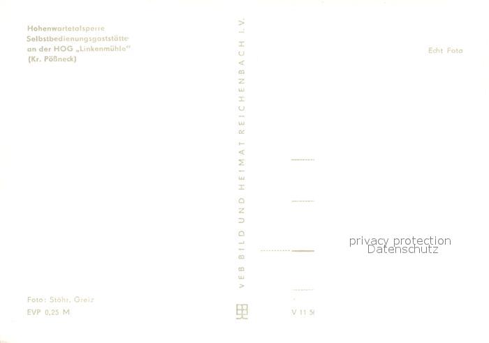 33049458 Hohenwarte Hohenwartetalsperre HOG Linkenmuehle postalisch nicht gelaufen Erhaltung siehe scans [NatalD47] KatCode: 11110016073035