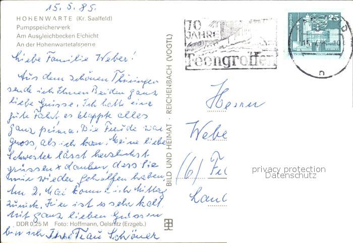 72524716 alte Postkarte Hohenwarte Pumpspeicherwerk Asugleichbecken Eichicht Hohenwartetalsperre postalisch gelaufen Erhaltung siehe scans KatCode: 11110016073035