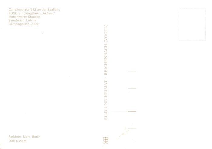 73909284 Hohenwarte Saaletalsperre Campingplatz FDGB Erholungsheim Aktivist Hohenwarte Stausee Sanatorium Loehma Campingplatz Alter postalisch nicht gelaufen Erhaltung siehe scans [WerneD78] Wern Katcode 11110016073035