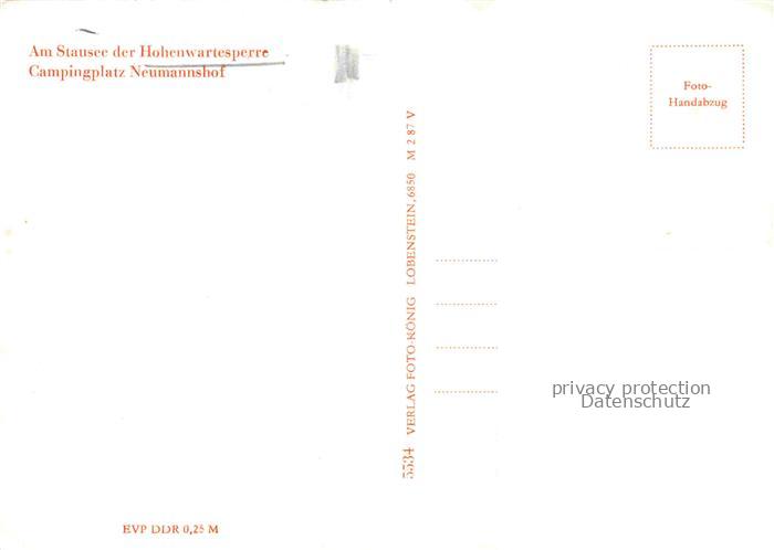 74112855 Hohenwarte Saaletalsperre Saalfeld-Rudolstadt Thueringen Am Stausee der Hohenwartesperre Campingplatz Neumannshof Handabzug postalisch nicht gelaufen Erhaltung siehe scans [FriedD77] KatCode: 11110016073035