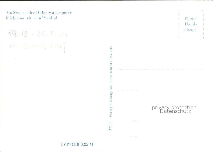 72328358 Hohenwarte Saaltal postalisch nicht gelaufen Erhaltung siehe scans KatCode: 11110016073035