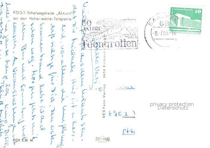 72645893 alte Postkarte Hohenwarte Talsperre Erholungsheim Aktivist postalisch gelaufen Erhaltung siehe scans [LiesaD40] KatCode: 11110016073035