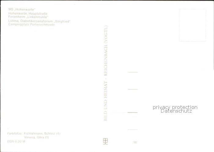 72519002 Hohenwarte Talsperre Ferienheim Linkenmuehle Loehma Campingplatz postalisch nicht gelaufen Erhaltung siehe scans KatCode: 11110016073035