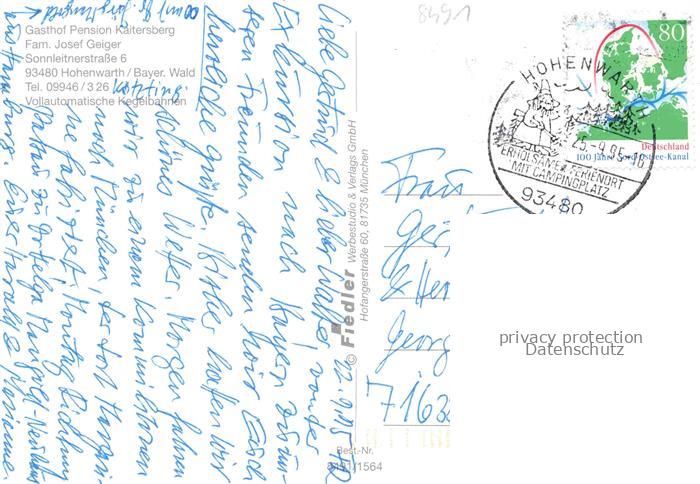 74049632 alte Postkarte Hohenwarth Koetzting Ortsansicht mit Kirche Gasthof Pension Kaitersberg Gastraum postalisch gelaufen Erhaltung siehe scans [FriedD77] KatCode: 11110009372135
