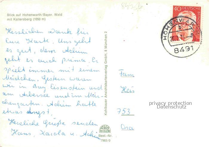 74049609 alte Postkarte Hohenwarth Koetzting Panorama Blick gegen Kaitersberg postalisch gelaufen Erhaltung siehe scans [FriedD77] KatCode: 11110009372135