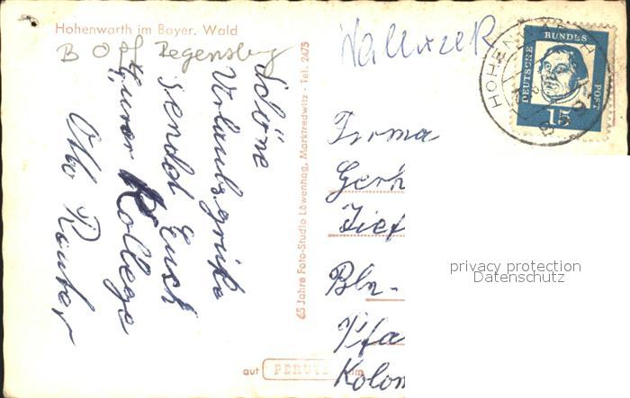 72922010 alte Postkarte Hohenwarth Wolfsegg Ehrenmal Schutzhaus Arbersee postalisch gelaufen Erhaltung siehe scans [MatthD68] KatCode: 11110009375211