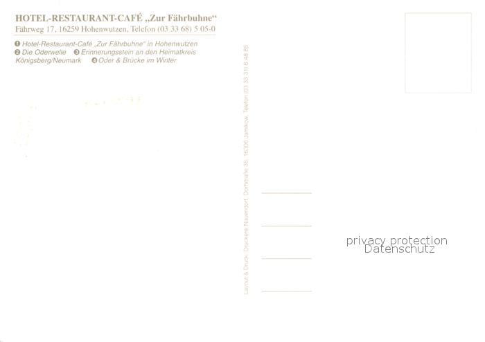 Hohenwutzen Hotel Restaurant Cafe Zur Faehrbuhne Oderwelle Gedenkstein Oder Brue