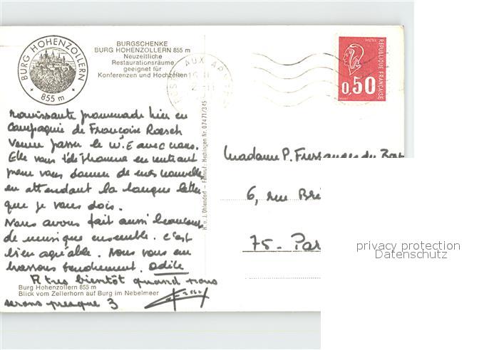 72181406 alte Postkarte Hohenzollern Burg postalisch gelaufen Erhaltung siehe scans KatCode: 11110008417031
