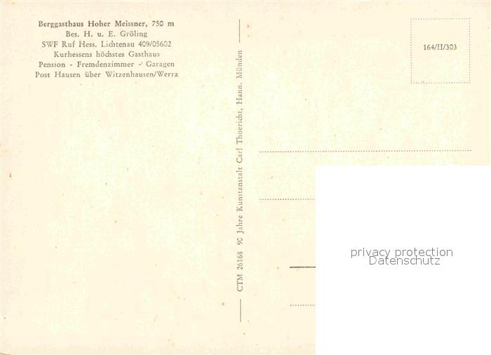 72724280 Hoher Meissner Berggasthaus Sender postalisch nicht gelaufen Erhaltung siehe scans [FriedD77] KatCode: 11110006636006