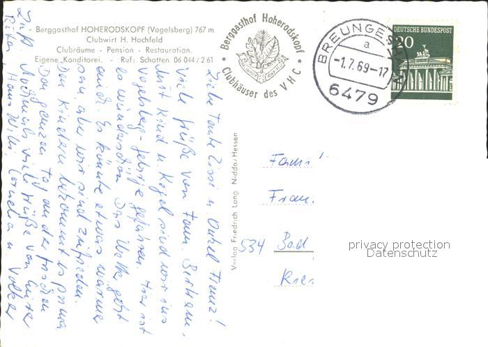 72063996 alte Postkarte Hoherodskopf Berggasthof postalisch gelaufen Erhaltung siehe scans KatCode: 11110006535016