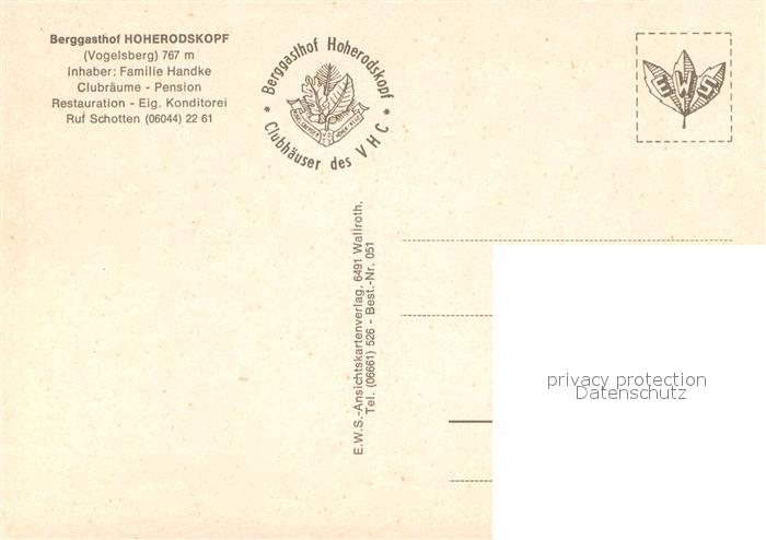 73004189 Hoherodskopf Berggasthof postalisch nicht gelaufen Erhaltung siehe scans [KathaD81] KatCode: 11110006535016