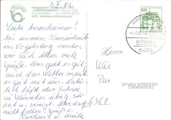 72530773 alte Postkarte Hoherodskopf Berggasthof Restaurant Cafe postalisch gelaufen Erhaltung siehe scans [LiesaD40 kt094box] KatCode: 11110006535016