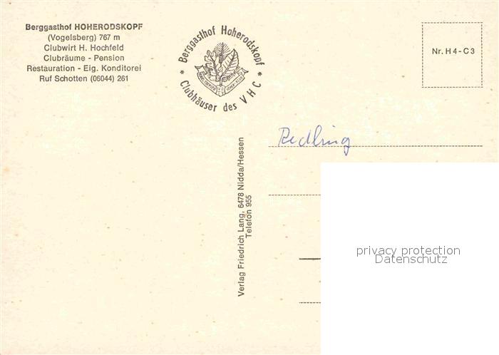 72777749 Hoherodskopf Berggasthof Vogelsberg postalisch nicht gelaufen Erhaltung siehe scans [LiesaD40] KatCode: 11110006535016