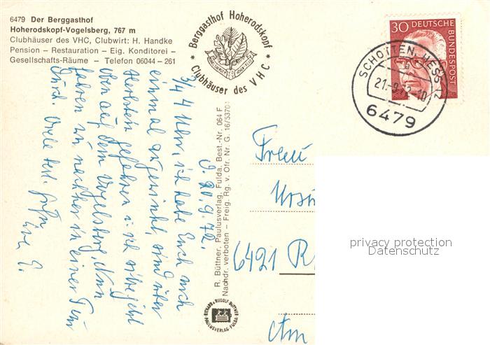 72961899 alte Postkarte Hoherodskopf Der Berggasthof Fliegeraufnahme postalisch gelaufen Erhaltung siehe scans [WerneD78] KatCode: 11110006535016