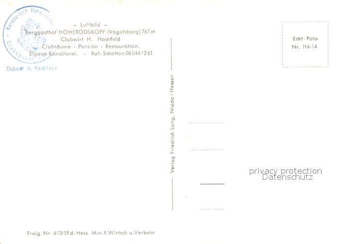 73098638 Hoherodskopf Fliegeraufnahme Gasthaus postalisch nicht gelaufen Erhaltung siehe scans [KathaD81] KatCode: 11110006535016
