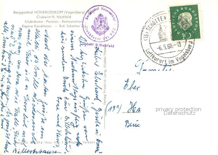 73765045 alte Postkarte Hoherodskopf Schotten Berggasthof Hoherodskopf Fliegeraufnahme postalisch gelaufen Erhaltung siehe scans [WerneD78] KatCode: 11110006535016