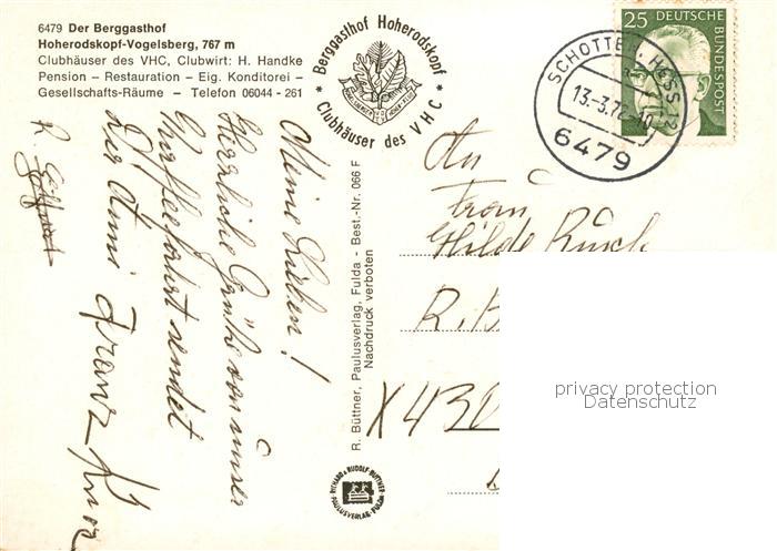 73828655 alte Postkarte Hoherodskopf Schotten Berggasthof Pension Restaurant postalisch gelaufen Erhaltung siehe scans [WerneD78] KatCode: 11110006535016