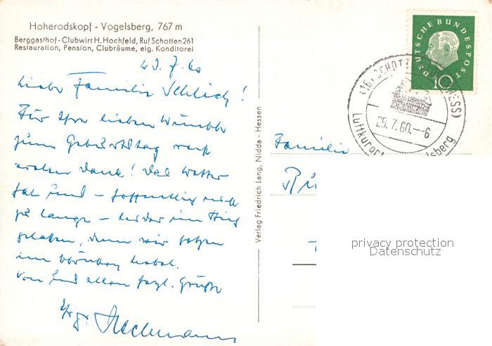 73001026 alte Postkarte Hoherodskopf Vogelsberg Berggasthaus postalisch gelaufen Erhaltung siehe scans [AndreD76] KatCode: 11110006535016