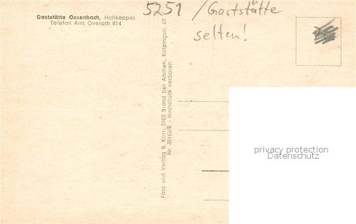 73706242 Hohkeppel Gaststaeaete Ossenbach Aussenansichten mit Terrasse postalisch nicht gelaufen Erhaltung siehe scans [LiesaD40] KatCode: 11110005374020