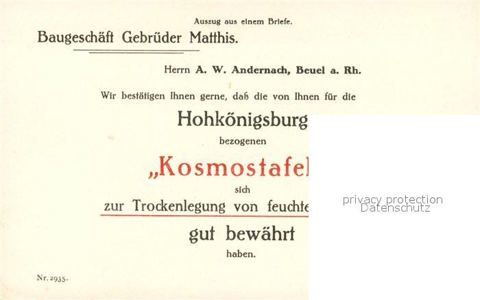 13487927 Hohkoenigsburg Haut-Koenigsbourg Kaiserliches Schloss postalisch nicht gelaufen Werbekarte (keine Postkarte) Erhaltung siehe scans [KathaD81] KatCode: 11170067567362